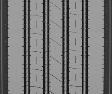 Shallow tread pattern reduces rolling resistance and improves fuel economy.